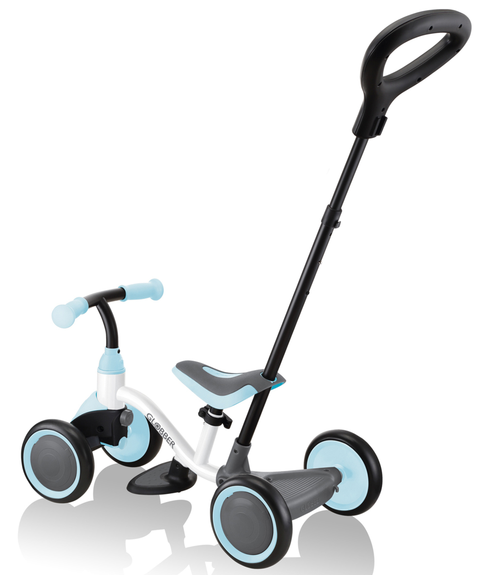 Globber Learning Bike 3 в 1 - уникальный беговел, который легко трансформируется в коляску. Конструкция максимально дружелюбна к малышам и позволит без труда кататься где угодно. Качественные комплектующие позволят плавно, мягко и быстро передвигаться по городским паркам и детским площадкам. Конструкция неприхотлива к погодным условиям, прыжкам с бордюров, ударам и падениям. А также он обладает сравнительно небольшим весом, что наверняка понравится каждому родителю.