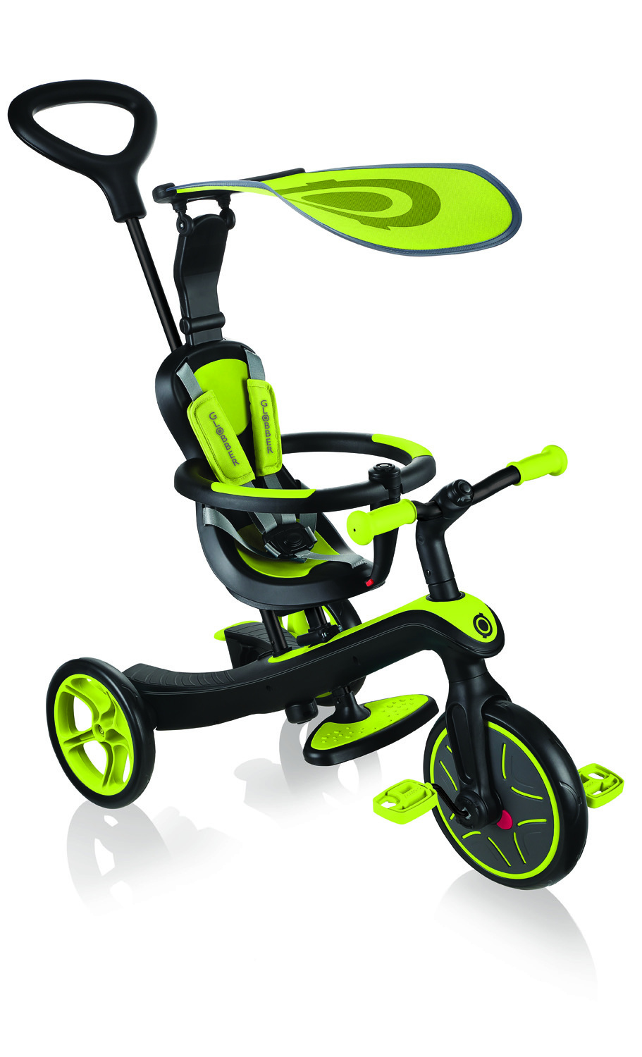 Globber Trike Explorer - предтоповая модель уникального детского велосипеда, который легко трансформируется из велосипеда в беговел. Качественные комплектующие позволяют этой модели быть неприхотливой к условиям погоды и маршрута. А также он обладает прекрасным дизайном, который ярко выделяет данную модель на фоне одноклассников.