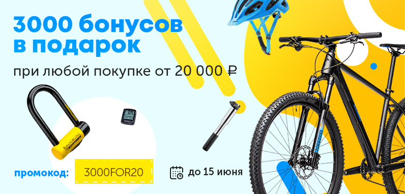 Друзья, всем покупателям до 15 июня мы подарим 3000 БОНУСОВ при совершении покупки от 20 000Р в любом магазине «ВелоСтраны» или в интернет-магазине. Подарочные бонусные баллы вы можете использовать в течение июля 2021 года!