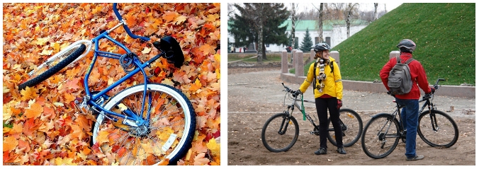 А в целом у осеннего катания на велосипеде множество плюсов. Нет изнуряющей жары, солнце не слепит, пить не так хочется, народу на улицах меньше, природа опять же «очей очарованье»: загородные виды, благодаря обнажившимся деревьям, становятся более просторными, золотистая листва украшает дорожки парков, в лужах отражается небо... Да и к чему всю осень с тоской смотреть в окно, вздыхая о ушедшем велосезоне, когда можно продолжать колесить, не теряя ни радости, ни физической формы!