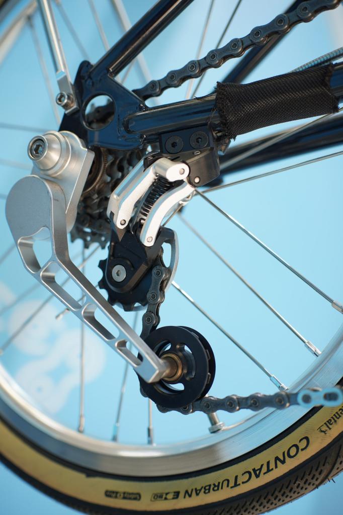 Внешняя лапка закреплена отдельно от корпуса переключателя, держит нижний ролик и работает как натяжитель цепи.