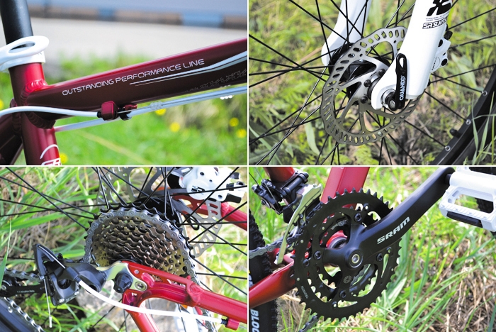 STARK Surfer Comp оснащен навесным оборудованием SRAM X5, вилкой SR Suntour XCR с возможностью блокировки, а так же надежными эффективными дисковыми гидравлическими тормозами  TEKTRO. Так же яркая красно-белая раскраска подарит Вам возможность выделится из серой массы. Окраска рамы выполнена по технологии 50% matt. C такой окраской байк приобретает уникальность и необыкновенный броский и стильный вид.