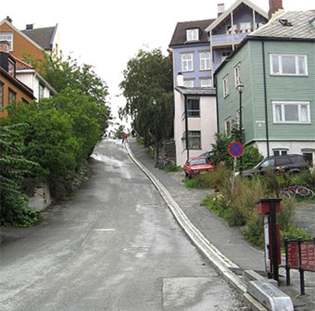 На самом деле все гораздо практичней. Как известно каждому, популярность велосипедов в Европе необычайно масштабна. В Тронхейме же не так все радостно. А останавливает жителей норвежского городка от свободной езды на двухколесных конях по его окрестностям рельеф. Мало того, что здесь огромное количество довольно крутых гор, так еще и исторический и административный центр находится в низине, а все жилые дома в основном наверху. И если молодежь еще готова осиливать ежедневно такие высоты, то, согласитесь, старушки вряд ли питают особую любовь к подобным подвигам! Вот и приходится им, бедным, ездить в основном на трамвайчиках и автобусах.