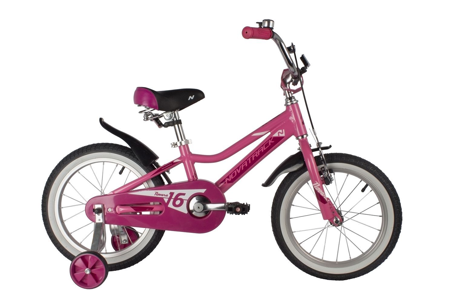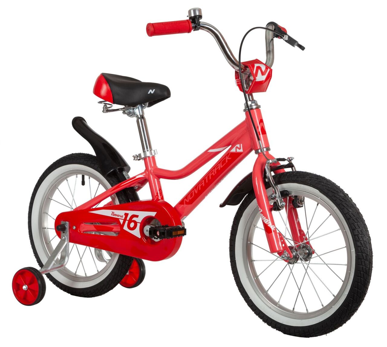Novara 16" (2022) высокого качества от компании Novatrack отлично подойдёт в качестве первого велосипеда. Комфортная рама из алюминиевого сплава 6061 имеет низкую посадку для возможности легко и быстро слезть и сесть на велосипед. Регулируемый по высоте руль и подпружиненное седло обеспечат правильную и удобную настройку положения ребёнка. Для обеспечения безопасного педалирования модель оснащена полноразмерной защитой цепи от попадания шнурков и штанин в систему привода. Накатистые колеса имеют надувные покрышки с оптимальным протектором для асфальтированных участков, а прочные втулки оснащены надежными обслуживаемыми подшипниками. За контроль скорости и остановку отвечает ножной тормоз на задней оси и передний ободного типа V-Brake. Для обучения удерживанию равновесия велосипед оснащён дополнительными съёмными колесами.