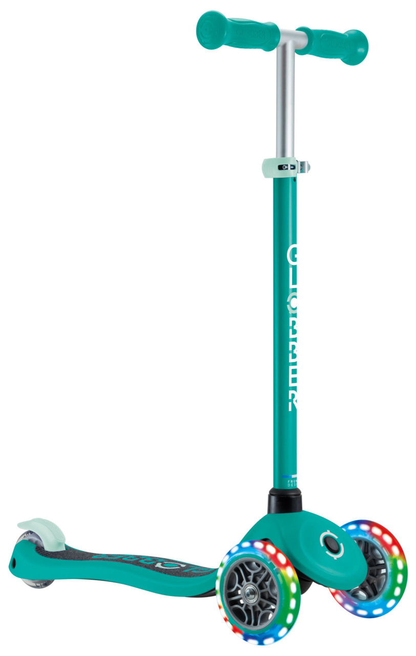Самокат Globber Primo Lights V2 — это идеальное сочетание стиля, функциональности и безопасности для детей от 3 лет. Он оснащён светящимися колёсами, которые делают катание ещё более увлекательным и заметным на дороге. Регулировка руля позволяет адаптировать самокат под рост ребёнка. Полиуретановые колёса диаметром обеспечивают хорошую проходимость и амортизацию. Платформа с антискользящим покрытием и рельефными элементами для лучшей устойчивости.
