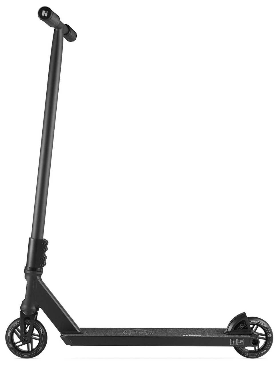Бренд HIPExtreme - дочерний бренд компании HIPE, производящий отдельные запчасти для самокатов, а также выпускающий профессиональные трюковые самокаты в среднеценовом сегменте. Модель H5 Black от данного бренда - реинкарнация легендарной более бюджетной модели H5 от компании HIPE, получившая ряд конструктивных изменений и рассчитанная для более усиленной эксплуатации. Новый H5 также относится к линейке стритовых самокатов и подойдет для райдеров с ростом от 160 до 175 сантиметров. Главным изменением в данной модели стал съемный фендер большего размера в задней части деки. Данный элемент позволит райдеру случайно не останавливаться при движении или выполнением трюков. При необходимости фендер можно снять, установив привычный тормоз,докупив его отдельно.