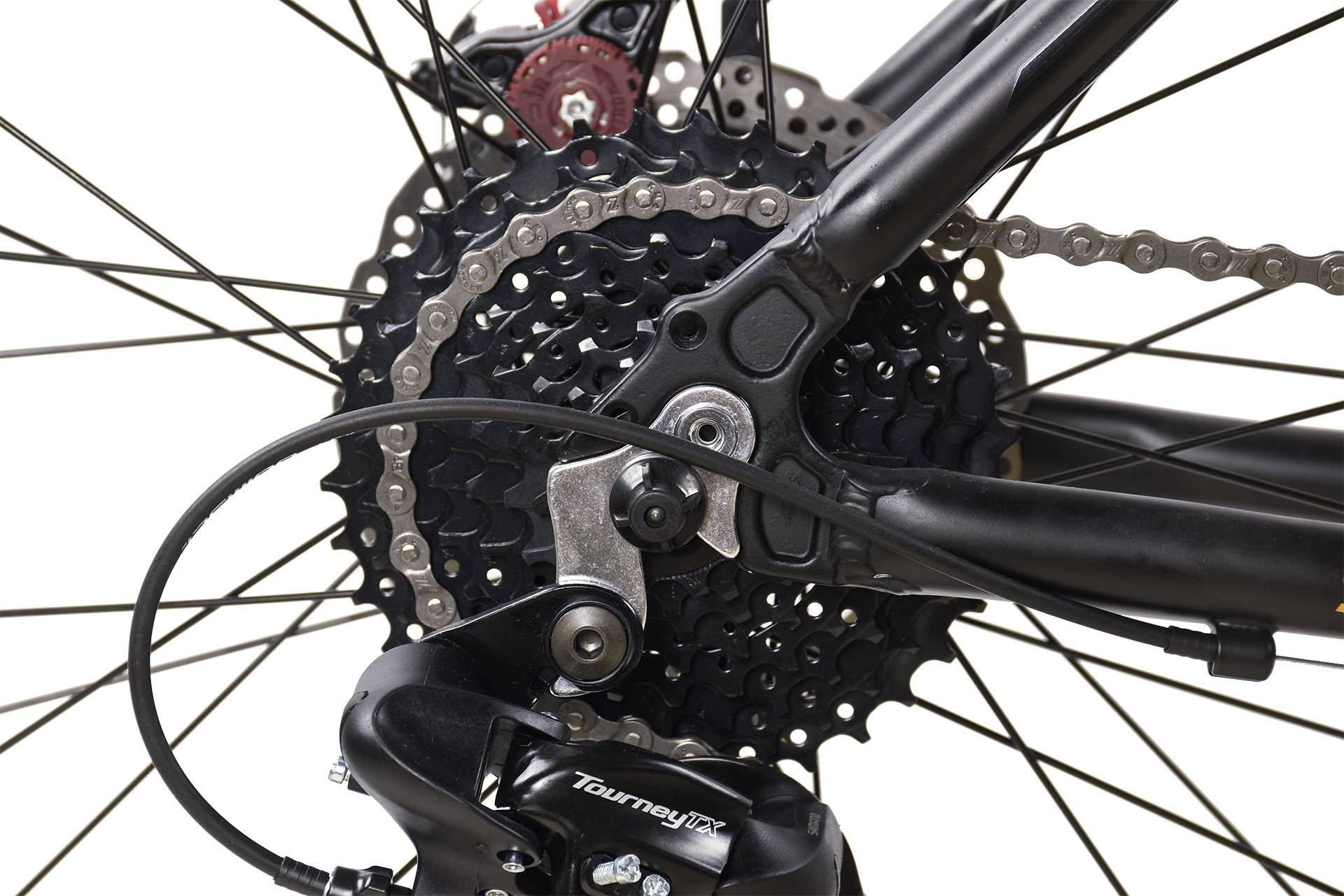 Обеспечивает переключение передач и регулирует натяжение цепи во время переключений. Скорости меняются так: велосипедист во время езды поворачивает рычажок манетки на руле, это усилие по тросику предаётся на переключатель, и он перекидывает цепь со звезды на другую звезду. Задний переключатель устанавливается на раму при помощи специальной металлической пластинки – т.н. «петуха».