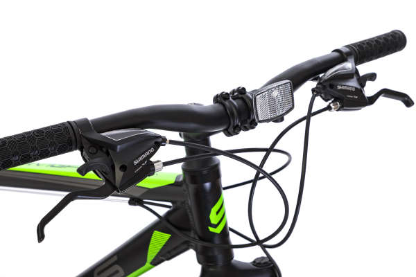 Отличный велосипед для своих денег. Легкая алюминиевая рама, хорошая амортизационная вилка, которая уверенно отрабатывает неровности. Тормоза дисковые механические, работают четко и надежно.