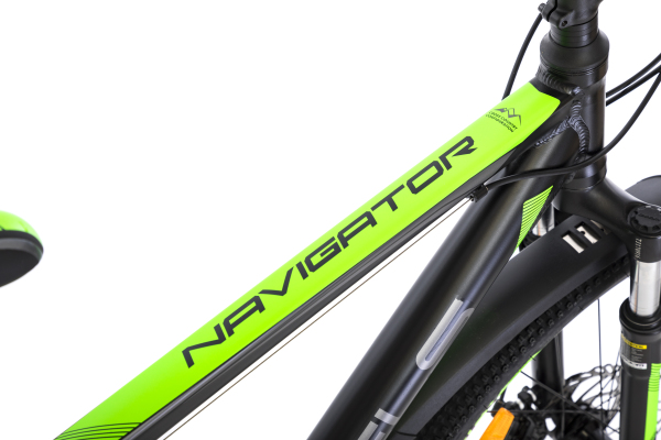 Серия горных велосипедов Navigator ориентирована на мужчин. Выпускается рама в размерах 14", 17" и 19", комфортный допуск по росту будет от 135 до 180 сантиметров, поддерживает нагрузку до 100 кг. Сопутствующее оборудование велосипеда позволяет быть полностью готовым к активному катанию по городу. Но для большей безопасности передвижения и хранения рекомендуем подобрать комплект фонарей Moon Nova и Pulsar, замок OYYO CB30 и шлем Oxford Talon.