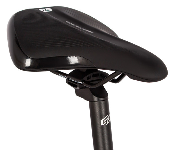 Легкая алюминиевая рама с заниженной верхней трубой, удобное седло, надежные тормоза.