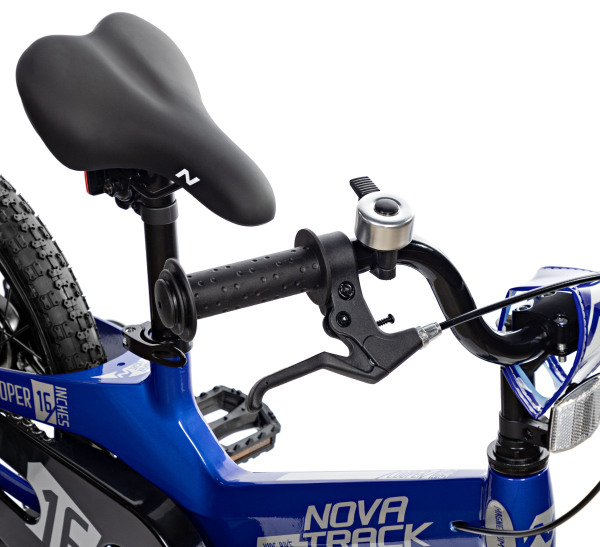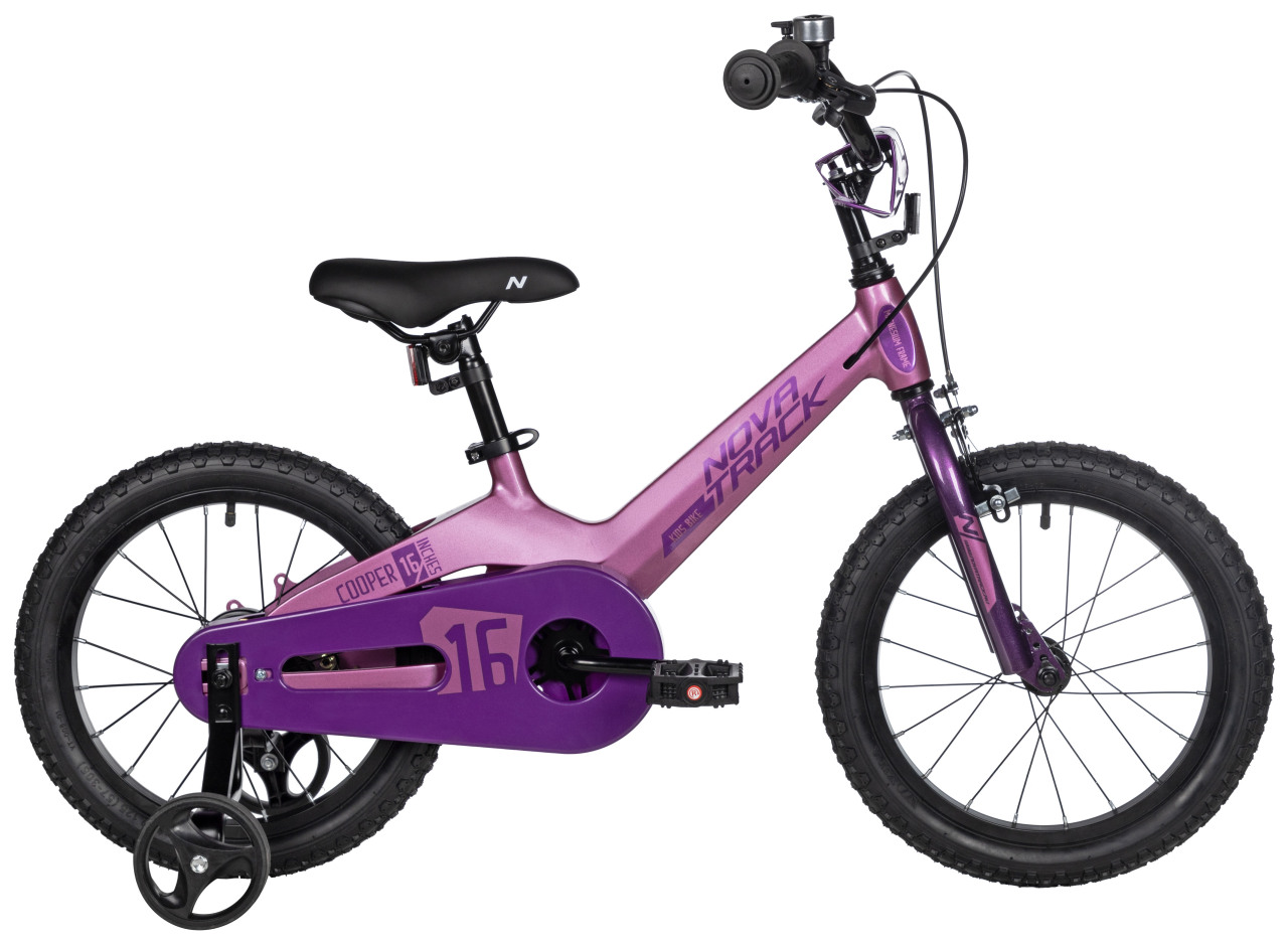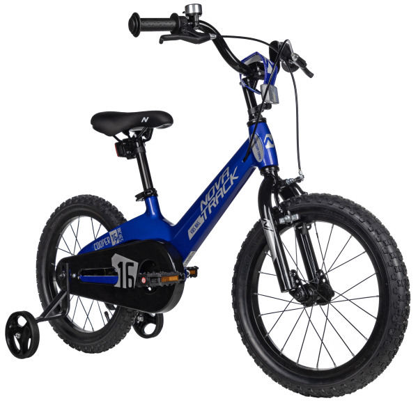Cooper 16" от компании Novatrack для энергичных детей. Модель прекрасно подойдёт для обучения езды на велосипеде. Лёгкая рама из алюминиевого сплава с добавлением магния с полуспортивной геометрией обеспечит отличное положение юного велосипедиста. Регулируемые руль и седло позволят настроить комфортную и правильную посадку. Надувные покрышки имеют универсальный протектор для асфальта и укатанных грунтовых тропинок. Втулки с отличным накатом оснащены обслуживаемыми подшипниками в стальных корпусах. Безопасное катание обеспечено полноразмерной защитой цепи от попадания посторонних предметов в систему привода и сохранения одежды (шнурки, штанины). Модель оснащена с завода вспомогательными колесами для обучения удерживания равновесия. За остановки и контроль скорости отвечают эффективные и легкие в управлении тормоза ободного типа V-Brake.
