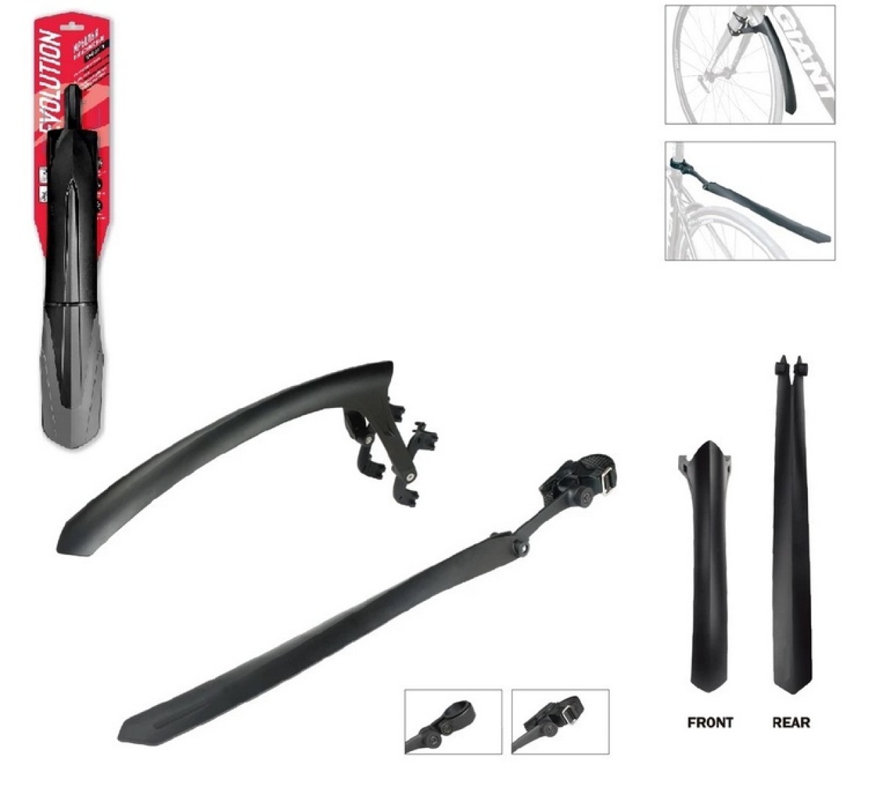 Evolution Gravel EVMG - универсальный и удобный в использовании комплект крыльев, который станет отличным решением для ежедневных поездок. Он отлично подойдет для дорожных велосипедов с диаметром колес 28" и шириной покрышек 28-45C. Оба крыла в комплекте являются быстросъемными. Благодаря удобным и продуманным креплениям, крылья легко устанавливаются на шток вилки и верхние перья рамы. Материалом выступает гибкий матовый пластик что обеспечивает отличную функциональность и низкий вес.