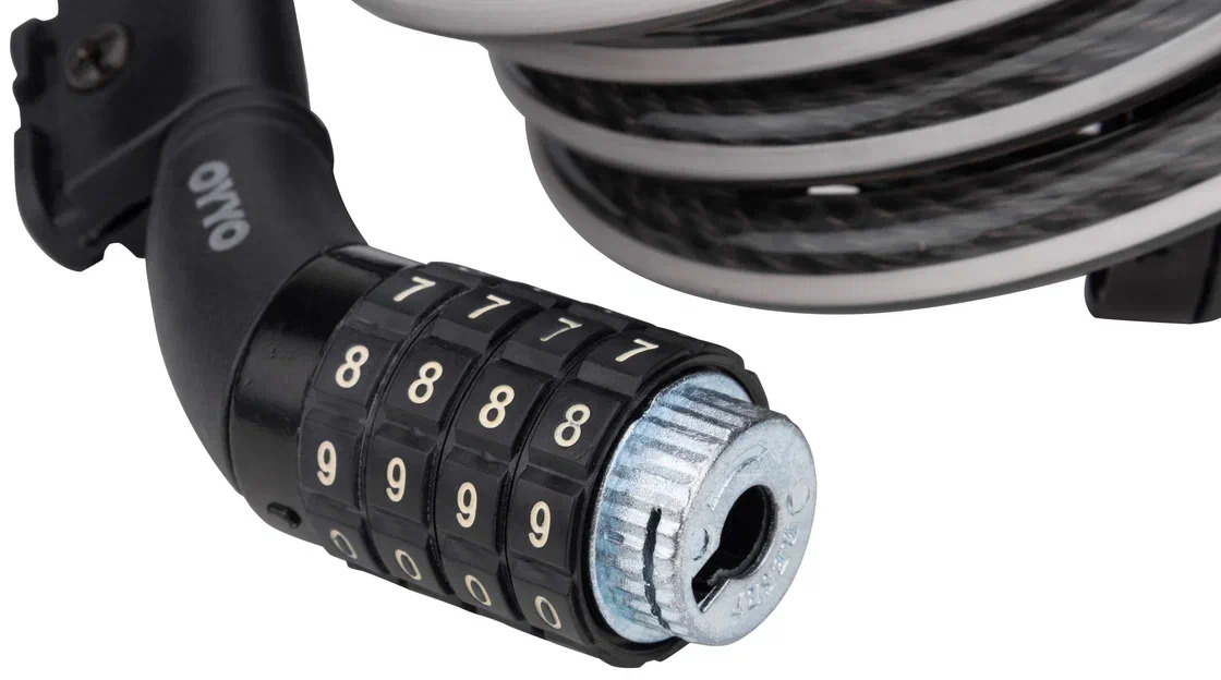 Замок внушает доверие, увесистый - значит внутри действительно стальной трос. Удобная кодовая система, поставил код такой же как на телефоне, удобно, точно не забуду и нет риска потерять ключ. Понравилось покрытие, он как будто софт тач, тактильно приятный и не царапает раму велосипеда.