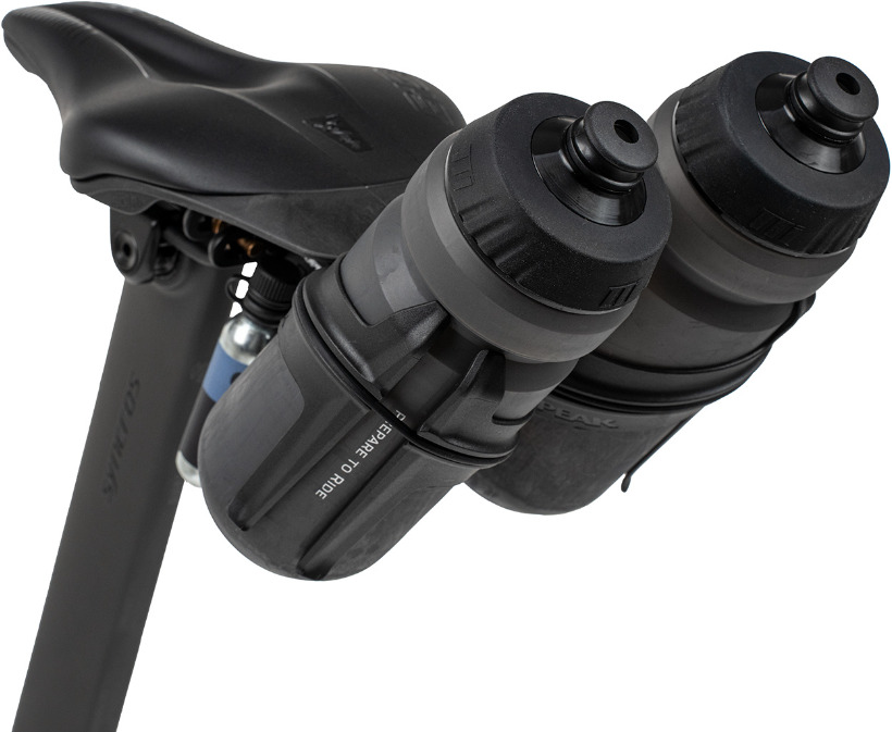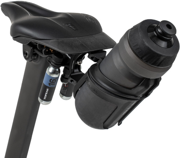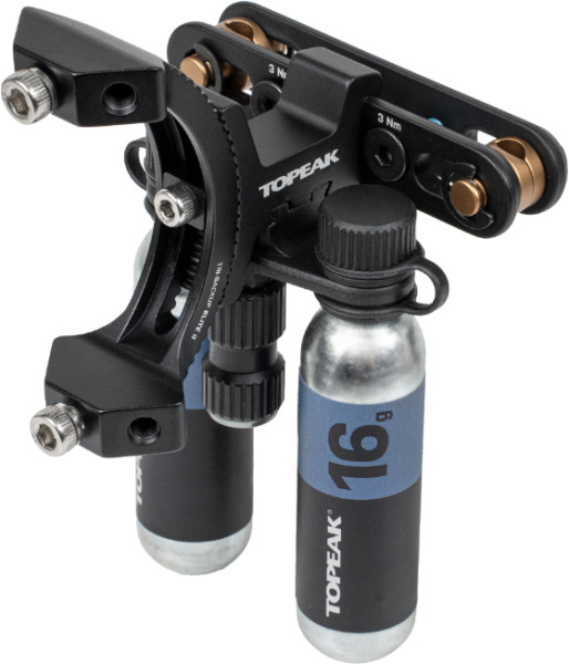 Tri-BackUp Elite 2 оснащен двумя креплениями под баллончики с C02 для быстрой подкачки покрышек, а также креплением для одной или двух фляг емкостью до 750 мл. Обновленная версия держателя оснащена направляющими с более широким диапазоном угла наклона, что позволит улучшить эргономику и быстро пользоваться прикрепленными аксессуарами прямо на ходу. Также, улучшения получил и флягодержатель. Теперь он имеет двойную резьбу, что препятствует проскальзыванию фляги внутри и дает более надежную фиксацию. Кроме этого, держатель оборудован дополнительным местом для крепления C02 насоса Topeak Micro Air Booster. Максимальная нагрузка составляет 2,5 кг.