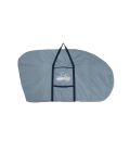 Veloangar 27 - продуманный и удобный мягкий кейс, позволяющий быстро и чисто подготовить велосипед к хранению или перевозке. Чехол выполнен из плотной ткани - из непромокаемого нейлона. Такое решение будет оптимальным, так как вся грязь с дорог, влага и смазка с колес и трансмиссии остается внутри чехла, не пачкая квартиру и отделку автомобиля. Чехол полноразмерный, позволяет упаковать велосипед со снятием переднего колеса и педалей, при этом он полностью закрывается на усиленную молнию и имеет регулировочные стрепы для стяжки чехла на велосипеде. Для снятых колес и педалей предусмотрены отдельные карманы, которые защитят чистоту рамы. Для удобства переноски есть ручки и ремешки на плечи. Выпускается чехол в сером и синем цвете. Имеет один размер, габариты которого составляют 190x105 сантиметров, весит 800 грамм, подойдет для любого размера колес и любого типа велосипеда, включая Plus стандарт и Fat. Если чехол не используется, дополнительный мешок для хранения позволит его компактно сложит и убрать, в сложенном виде габариты занимают всего 0,8 литра.