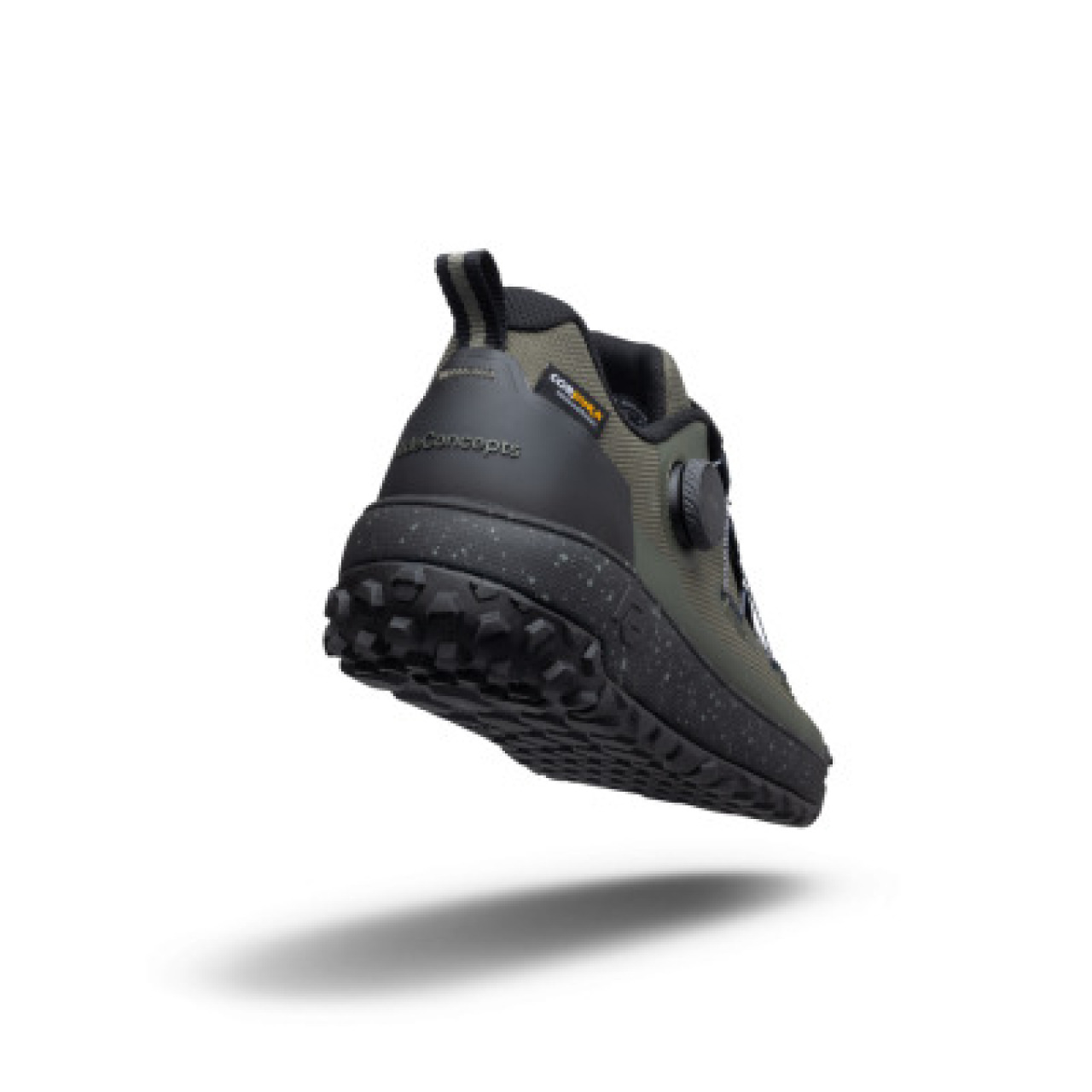 Ride Concepts Tallac Boa (2025) представляет собой универсальные кроссовки, идеально подходящие как для повседневной носки, так и для катания на велосипеде. Верх из сетки Cordura обеспечивает воздухопроницаемость и долговечность эксплуатации. Стелька D3O High Impact Zone эффективно поглощает удары и снижает усталость. Резиновая подошва MaxGrip со средним уровнем жёсткости гарантирует стабильность и передачу мощности. Материал устойчив к легким загрязнениям и мелким брызгам. Антибактериальная сетчатая подкладка предотвращает появление неприятного запаха. Система BOA Fit System Li2 Dial с диском микрорегулировки обеспечивает подгонку «на ходу» и гарантирует надежную фиксацию стопы. Модель отлично подходит для различных видов велоспорта: для МТБ, кросс-кантри и трейла, обеспечивая эффективное педалирование и комфорт в любых условиях - EVA-амортизационная вставка обеспечивает комфорт и поддержку при длительных поездках. Нейлоновый хвостовик RC PowerDrive увеличивает производительность, при этом сохраняя боковую жёсткость и обеспечивая постоянную поддержку на сложных трассах.