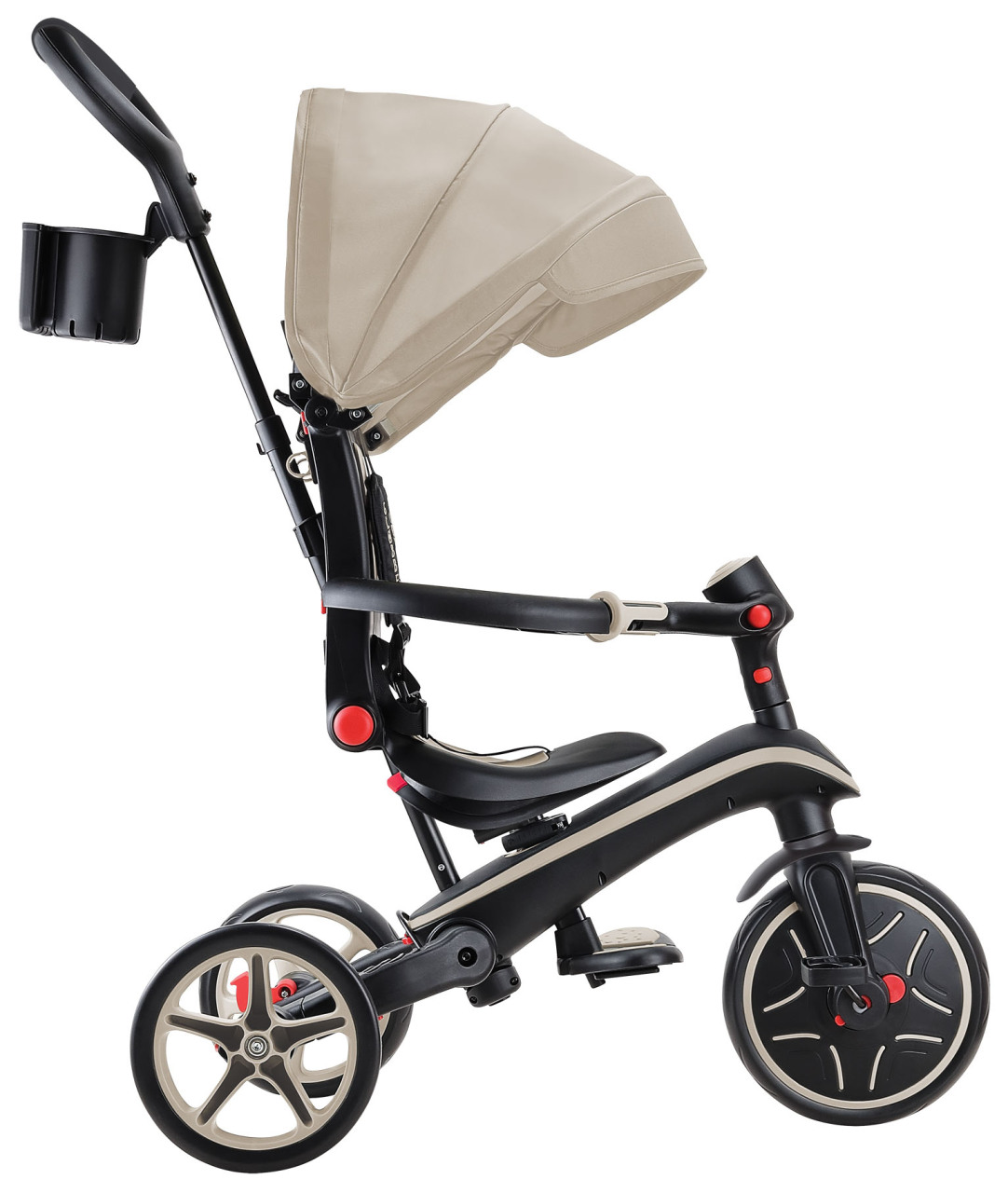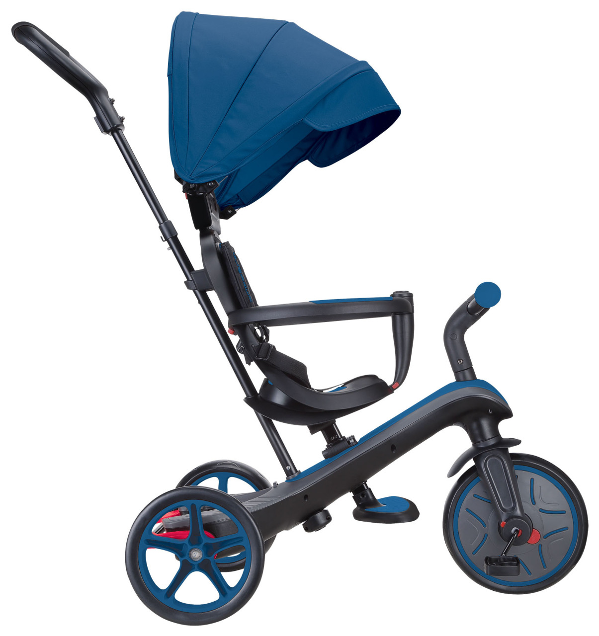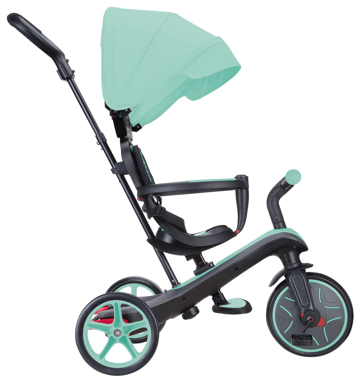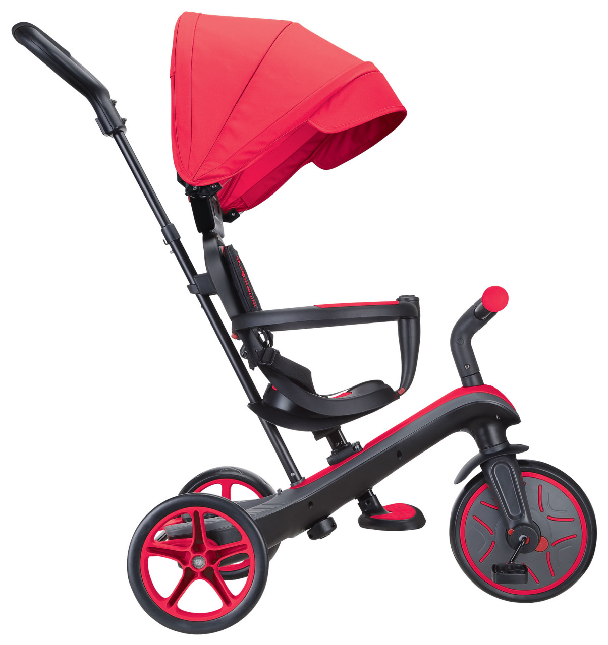 Ручка выступает как толкатель для помощи ребенку или служит для управления велосипедом.
