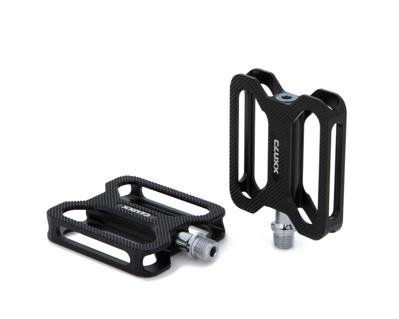 Педали Cluxx Rocket 100 - простое и технологичное решение для апгрейда вашего велосипеда. Эта модель педалей-платформ выполнена из алюминия, что будет особенно актуально для райдеров, катающихся в дисциплинах трейл и слоупстайл, в которых данный материал пользуется большой популярностью, но отлично подойдет и для любительских поездок в условиях города и легкого бездорожья. Оси педалей изготовлены из сплава Cr-Mo, который отличается лёгкостью и прочностью. Благодаря этому платформа надёжно зафиксирована, и можно не беспокоиться о возможных поломках осей во время движения на высокой скорости или на спусках. За превосходное сцепление с обувью отвечает рифленая поверхность платформы педалей. Также, внутри платформ установлены закрытые промышленные подшипники, что будет положительно влиять на прочность. Установка данных педалей так же проста, достаточно будет использовать шестигранный ключ на 8 мм.