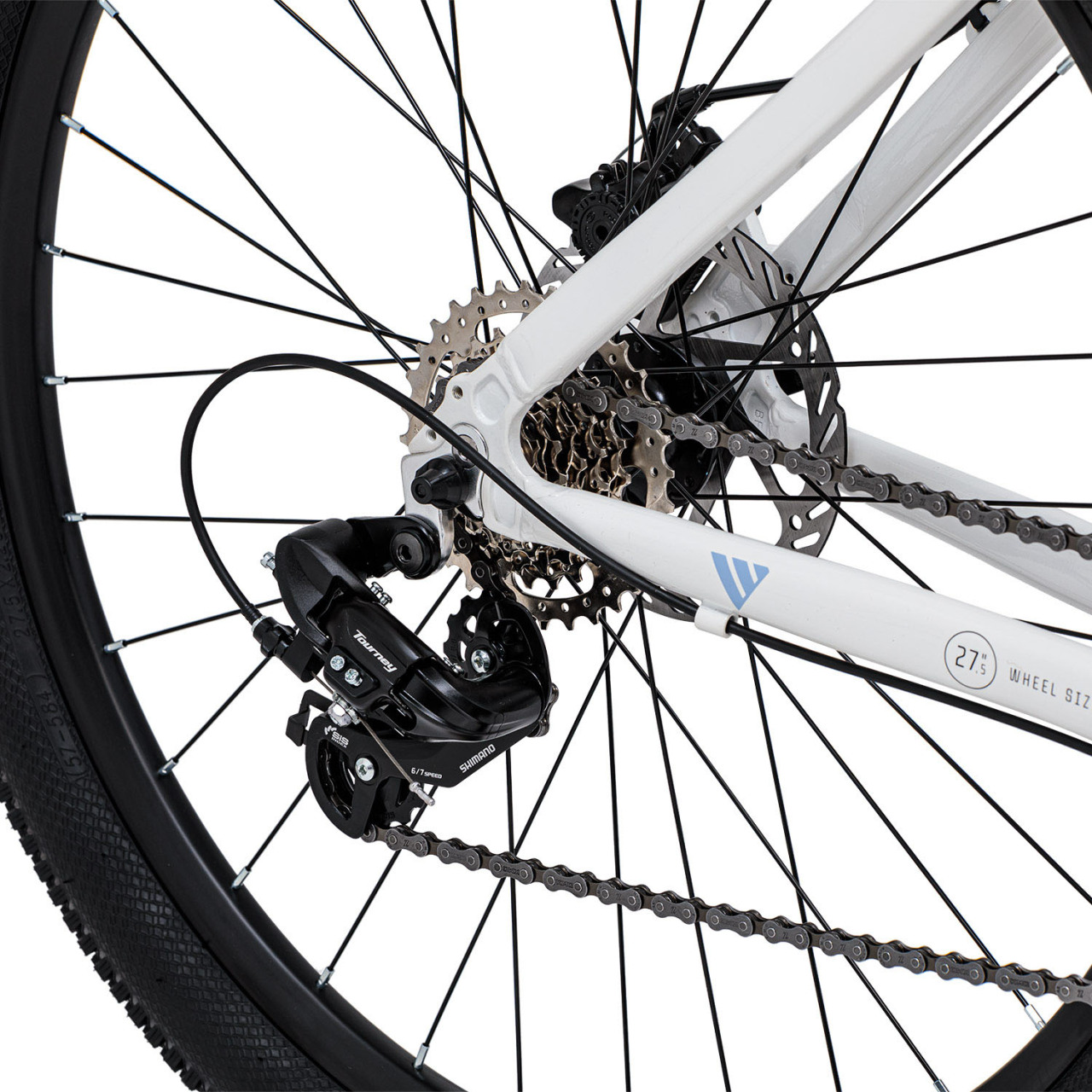 Двойные алюминиевые обода обеспечивают прочность и легкость колес. Велосипед оснащен дисковыми механическими тормозами, которые обеспечивают надежное и эффективное торможение в любых условиях. Размер колес составляет 27,5 дюймов, что обеспечивает хорошую управляемость и проходимость. Этот велосипед разработан в Австрии и производится в Тайване и Китае.